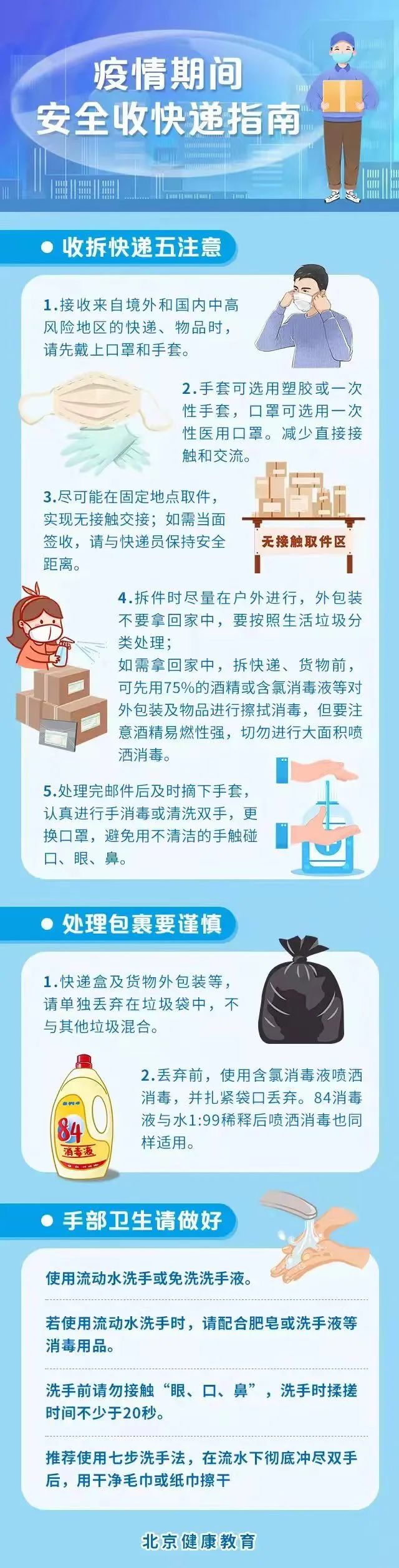 还要提醒的是,针对杭州某快递公司中转场多名快递员感染的情况,建议广大市民在接收快递的时候,务必做到“五注意”,谨慎处理包裹外包装,并及时科学洗手。