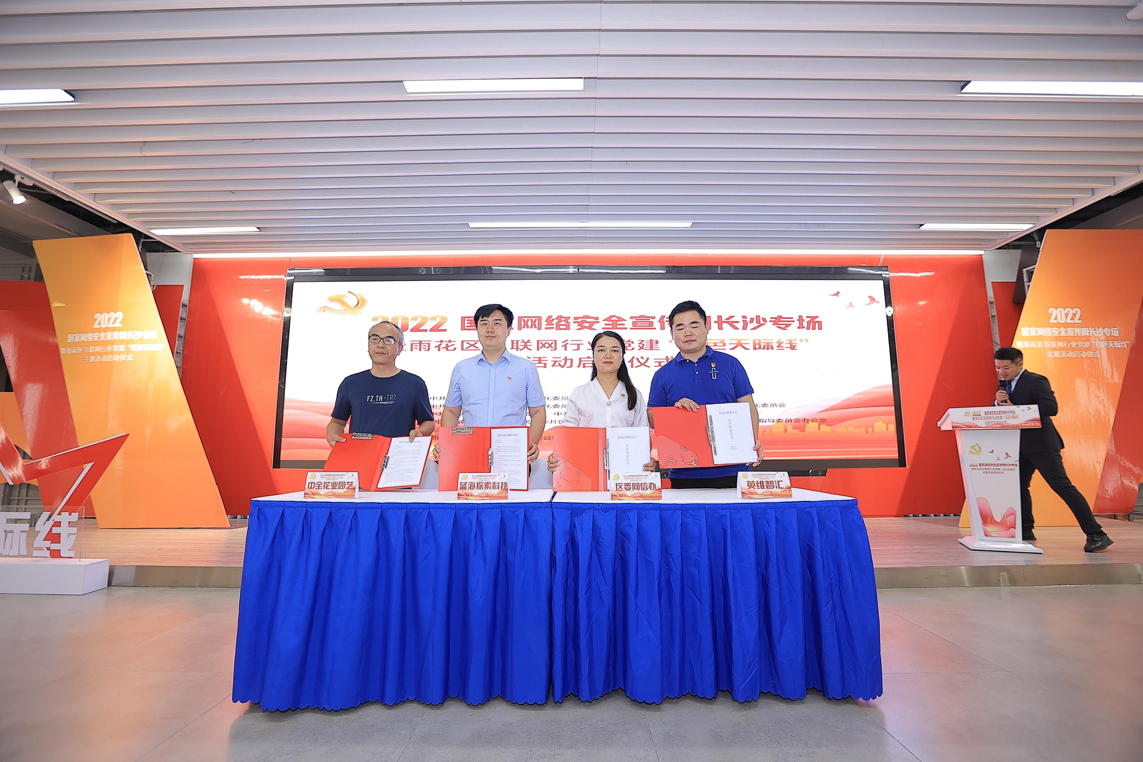 启动仪式上,雨花区现场发放互联网党建·网络安全“清单大礼包”,雨花区首批13家企业享受惠企“大礼包”。此外,本次活动设置了现场签约环节,在乡村振兴、大学生就业创业及企业网络安全等方面,助力企业跑出发展“加速度”。同时,本次活动线上线下联动雨花区网络安全党员志愿者现场发起网络安全倡议,呼吁市民共同守护网络安全,争做新时代的“四有好网民”。