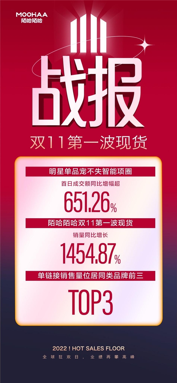 长沙晚报掌上长沙11月10日讯(通讯员 刘文)近日,陌哈陌哈双11第一波现货销量同比增长1454.87%,明星单品宠不失智能项圈首日成交额同比增幅超651.26%。