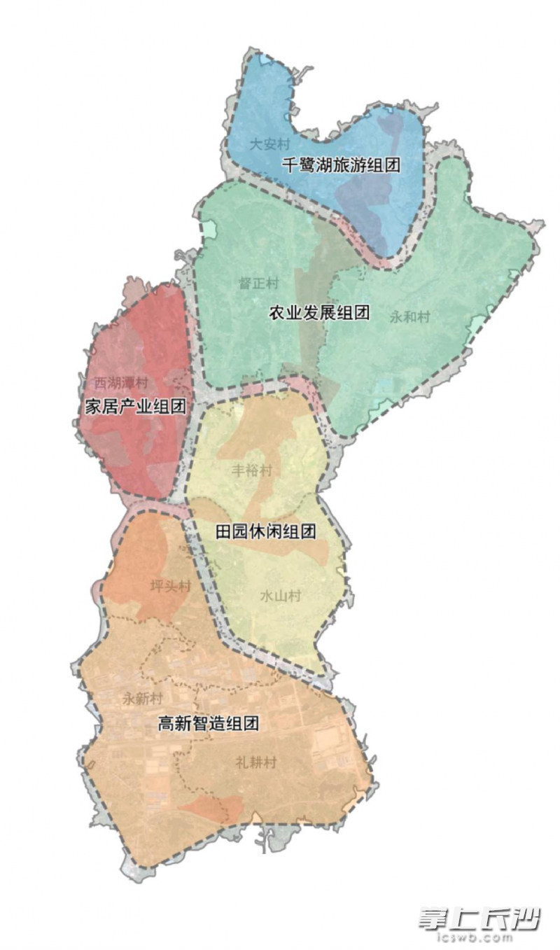 浏阳市永安镇试点围绕“城郊田园新乡,未来智造高地”的主题定位,依托项目区优越的地理区位、丰富的自然及人文资源、良好的高新园区发展基础等,抓住全域土地综合整治契机,以“新农业、新园区、新人居”作为发展主要策略,构建“一轴、一廊、四区”的空间格局,通过一系统性工程建设,打造集产城融合、农业提升、生态宜居于一体的“未来乡村”,助推永安镇乡村振兴。