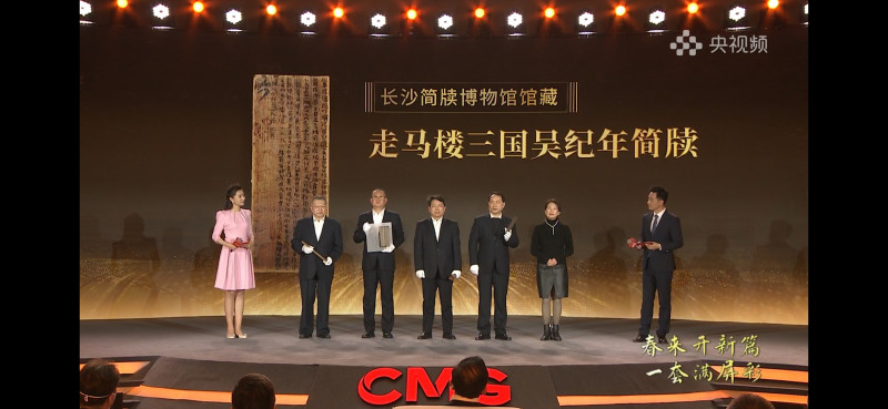 长沙简牍博物馆馆长李鄂权介绍:“我今天带来的是走马楼三国吴纪年简。这批简牍1996年出土于长沙市的一口古井,总数达10万余枚,超过当时全国已出土简牍数量的总和,被誉为20世纪我国继殷墟甲骨、居延汉简、敦煌文书之后在古代出土文献资料方面又一次重大发现。这些简牍中,会不会有《三国志》等史书上没有记录的重要历史呢?长沙简牍博物馆期待通过总台的《简牍探中华》与大家一起‘简’述历史、‘牍’懂中华。”