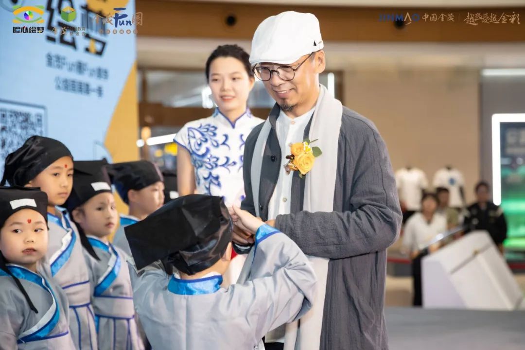 为弘扬传统文化,传承尊师重道精神,本次画展开幕式特别设置了庄重的开笔礼仪式。策展人王志晔用中国传统的朱砂启智之礼,点亮孩子们心中“开笔明志,启蒙人生”的远大志向。