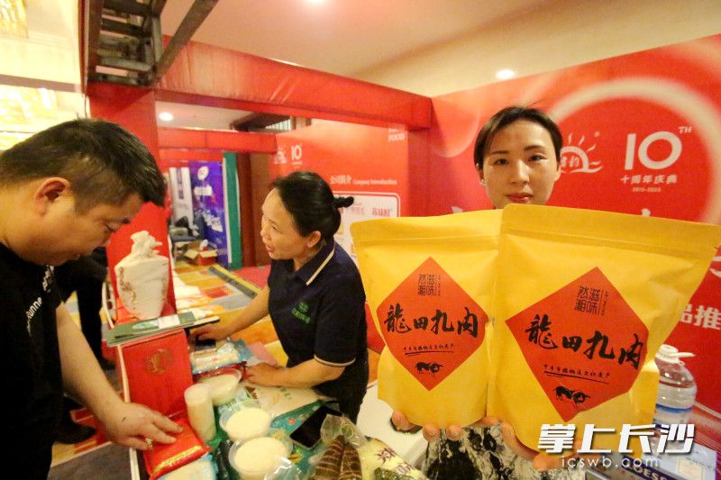 现场,由香韵食品、彭记坊食品、新聪厨食品、菜帮主食品、印湘园食品、天天绿色食品、家湘味食品、潭州食品、沩山密印山泉食品等50多家食品公司和食材企业精心推出的200多款定制菜品和特色食材精彩亮相,吸引餐饮、旅游会员企业参会者围观、品味、洽谈、签约,让供需方精准对接,享受集团采购优势与红利政策,现场达成意向合作460多个,现场成交金额230多万元。