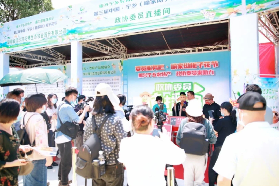 开幕式当天主会场视频连线分会场,一起感受橘子洲栀子花打卡点,看一看栀子花系列产品在现场的畅销盛况。
