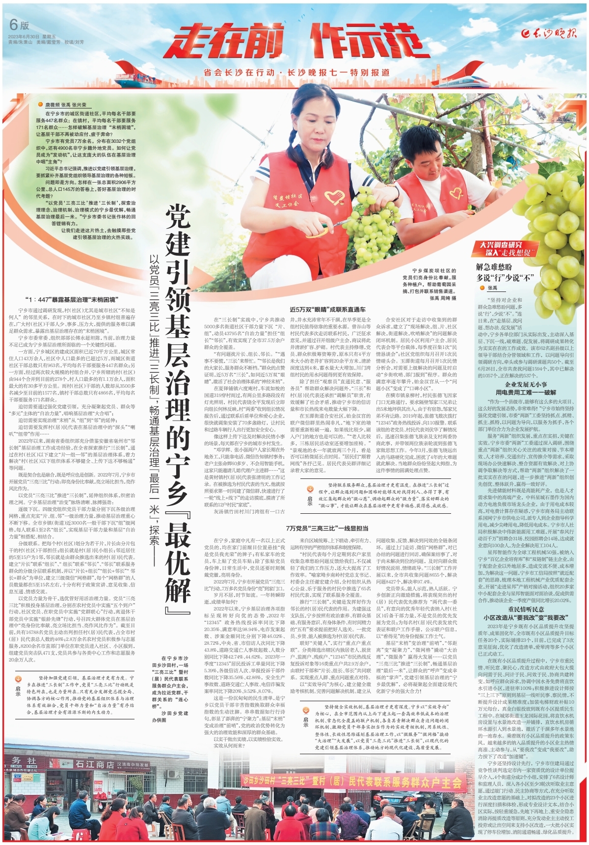 以党员“三亮三比”推进“三长制”,延伸组织体系,织密治理之网。宁乡基层治理“治变”脉络清晰、脉搏强劲: