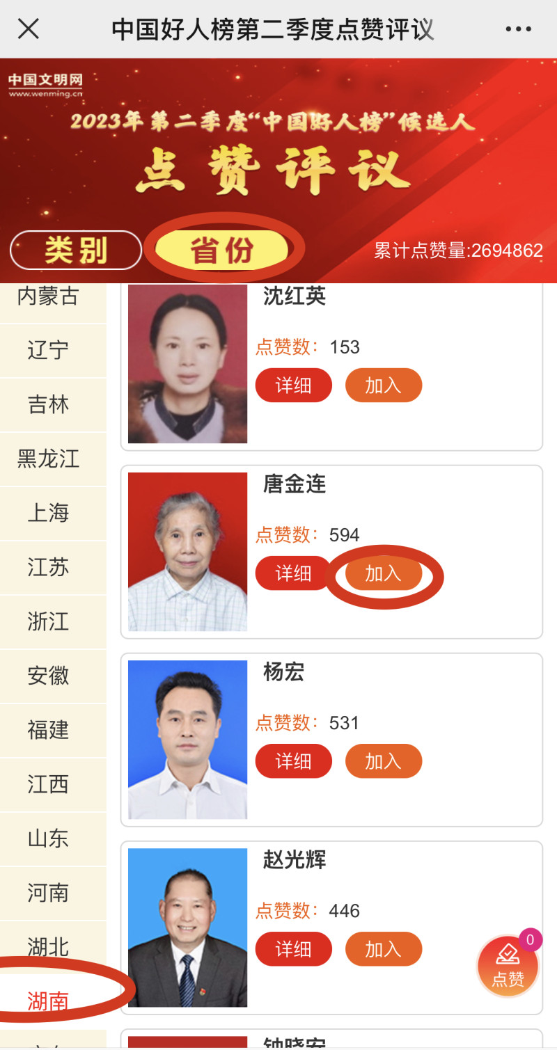 2023年第二季度“中国好人榜”候选人湖南入围名单