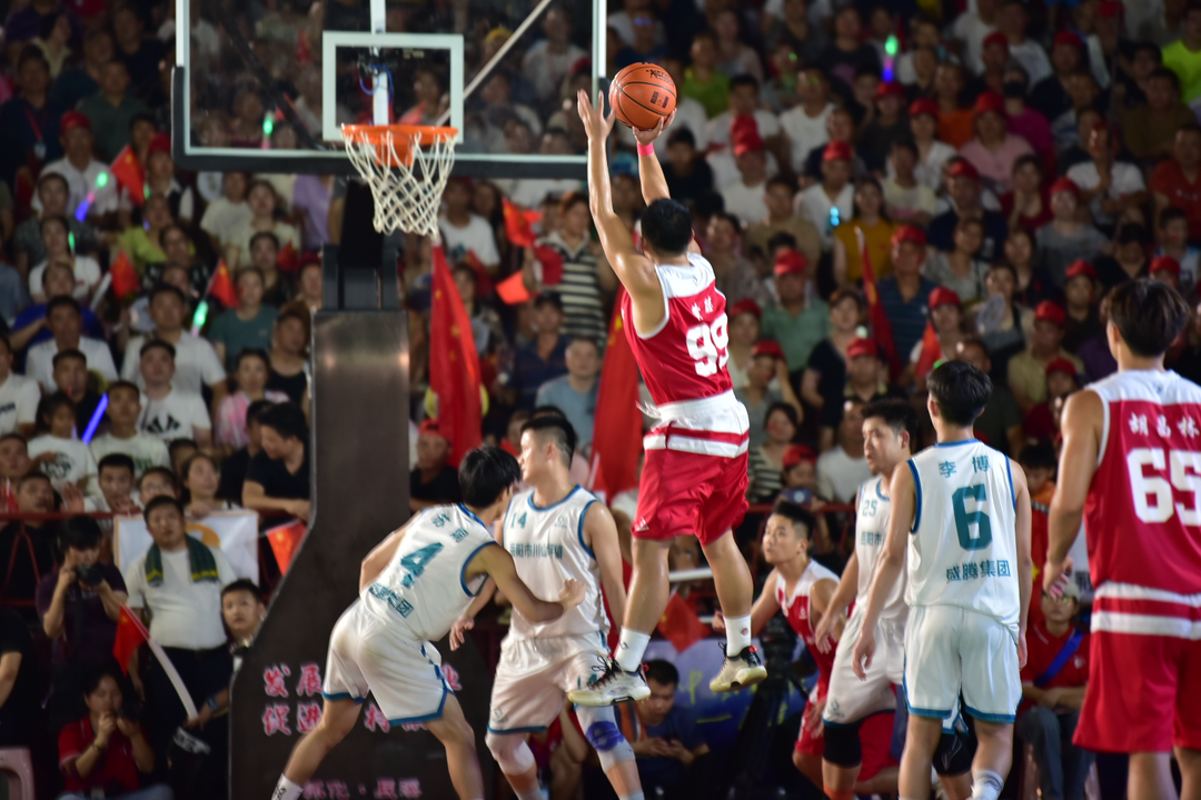 当日20时,随着裁判哨声响起,冠亚军对决赛火热开赛,岳阳市川山坪镇队与郴州市马田镇队展开激烈交锋。现场看台上,依然人山人海、座无虚席,呐喊声、助威声不绝于耳。经激烈角逐,郴州市队以65:61战胜对手,获得赛事冠军。