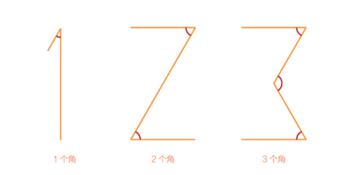 发现了吗?“1”之所以代表一个,因为它只有1个角;“2”之所以代表两个,因为它是2个角;“3”之所以代表三个,因为它是3个角。