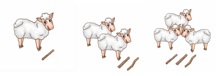 一根小木棍代表一只羊,两根小木棍代表两只羊……,所以“一”只能是指一个物体,“二”则是两个物体,“三”是三个物体,“四”……