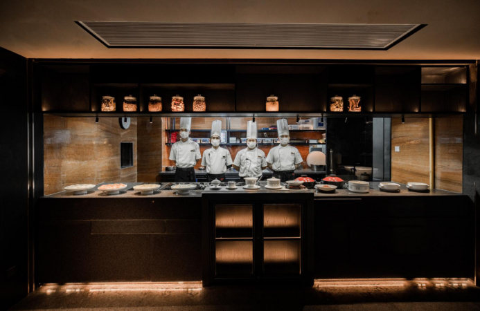 罗伟介绍,从2023年4月门店决定朝着米其林方向发力、改造,用餐空间调改成了第一步。如,将大厅18张餐桌调改为13张圆桌,是在权衡营业额、固定成本之下,为顾客的私密感、舒适度买单的尝试;又如,上海人不喜辣而徐记海鲜整体出品带辣,在顾客吃下一口辣菜面露难色后,一杯解辣、爽口的青柠汁便会及时递到桌前,只为得到客户100%的满意。