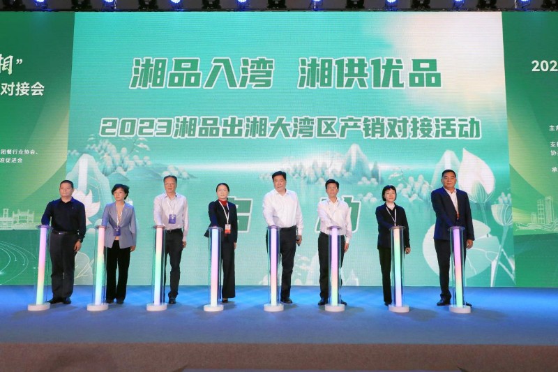 活动现场,为促进湖南优质农产品对接粤港澳大湾区市场,湖南省农业农村厅二级巡视员龙志刚发表致词,并共同启动“2023湘品出湘大湾区产销对接”活动,为14位“湘品出湘大湾区首席推荐官”颁发聘书。