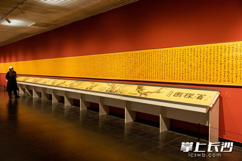 记者进入展厅,书香气息扑面而来,工笔画、写意画、敦煌壁画等画作和行书、楷书、草书、篆书、隶书等各类书法楹联与长卷,一一映入眼帘。其中,行书作品《道德经》长达23米,字字温润隽秀,令人称奇。