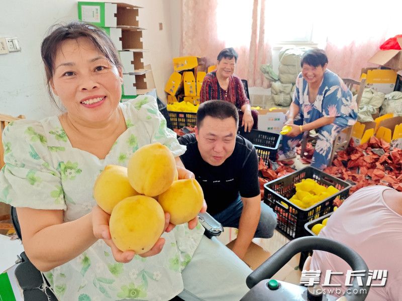 “老蒋,今天我微信上收到了300多斤订单,等下去把黄桃摘回来,客户下午三四点会过来提货。”7月30日上午,宁乡横市镇云山村月新组8号唐铃家,双腿残疾的唐铃坐在电动轮椅车上,对着正在忙碌的丈夫蒋千武说道。