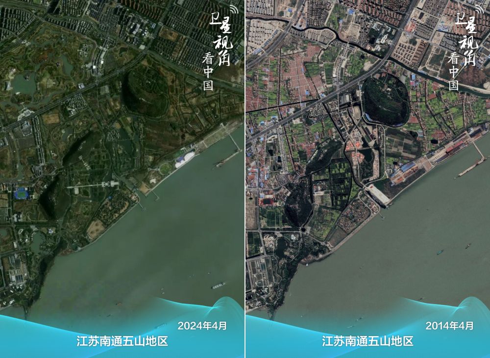 近年来,南通市启动五山沿江地区生态修复和保护工作,统筹推进沿江地区产业退、港口移、城市进、生态保,修复岸线12公里,新增森林面积约6平方公里,实现了从“临江”到“滨江”、从工业“锈带”到生态“秀带”的蝶变。