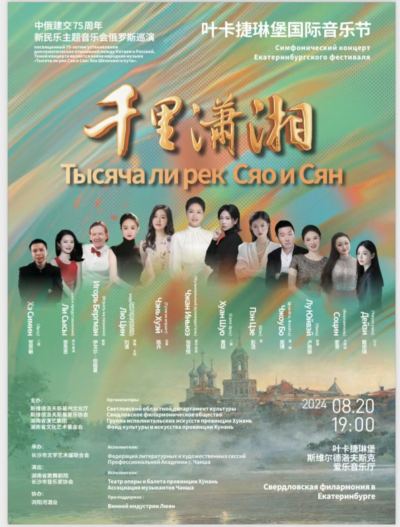 2024年是中国和俄罗斯建交75周年。本次新民乐主题《千里潇湘》将在俄罗斯三个城市演出五场,含民乐室内音乐会和《千里潇湘·丝路回响》主题交响音乐会。五场音乐会都将与俄罗斯艺术家合作,中俄指挥家联合指挥,这不仅是湖南艺术团体首次用民族音乐会的形式在国际音乐周中亮相,而且是两国专业艺术团体之间的深入交流和探索,更是中国音乐与俄罗斯音乐的碰撞,让两国文化通过音乐交相辉映。