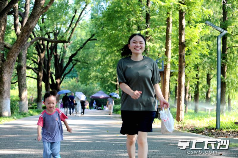 “人在树荫下,感到凉爽,特别是湖风一吹,空气中溢满草木芳香,比坐在家里吹空调舒爽多了。”正在年嘉湖畔大树底下乘凉的陈嘉福老人告诉记者,自己住在烈士公园北门不远处,每天吃完早餐就和老伴来年嘉湖畔的大树下乘凉,下午五六点又过来烈士公园散步。