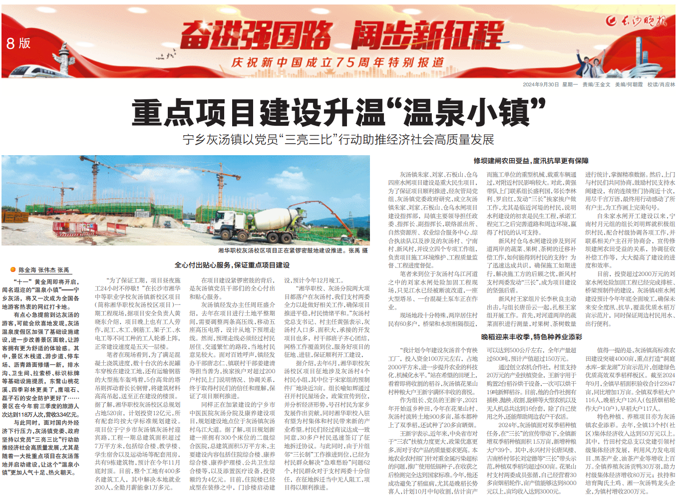 与此同时,面对国内外经济下行压力,灰汤镇党委、政府坚持以党员“三亮三比”行动助推经济社会高质量发展,尤其是随着一大批重点项目在灰汤落地并启动建设,让这个“温泉小镇”更加人气十足、热火朝天。