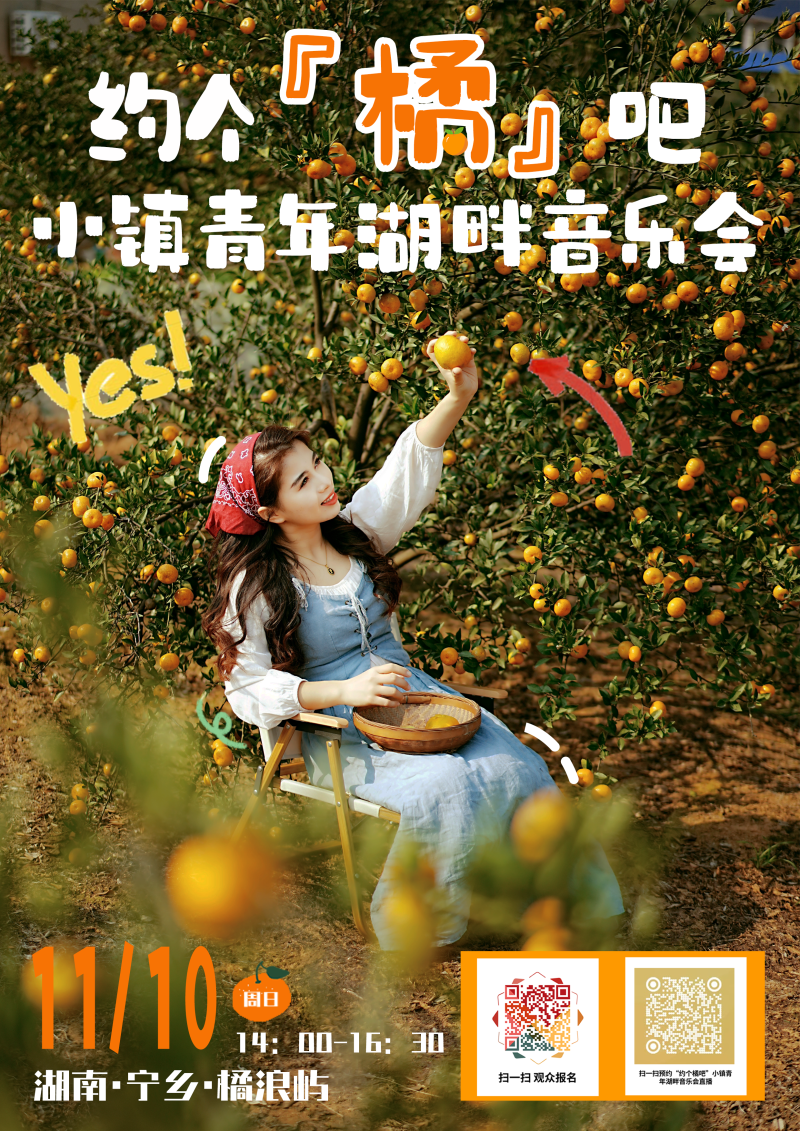 11月10日,一场关于音乐与自然、青春与青年的“橘色”邂逅,将在宁乡双江口镇左家山村橘浪屿浪漫上演。