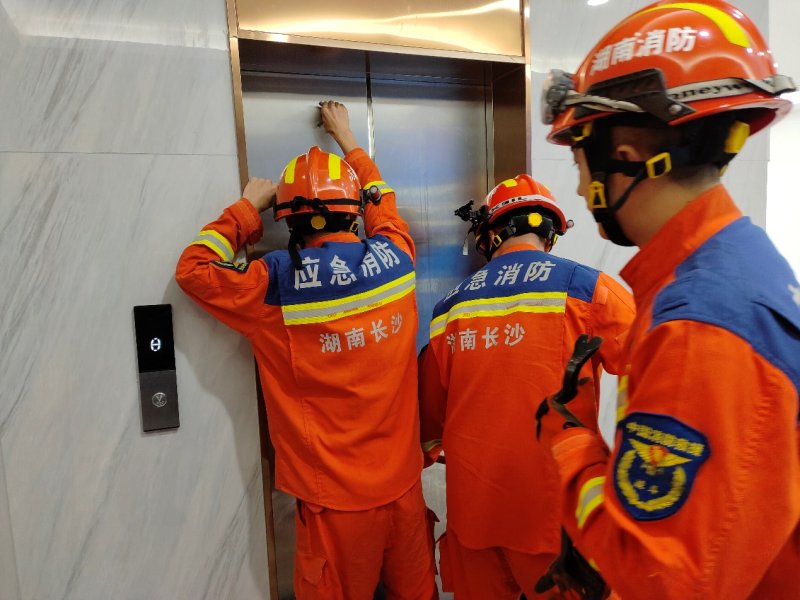今天7时37分,天心区消防救援大队劳动路消防救援站接到119指挥中心调令称,天心区金盆街道夏家冲社区城市风情小区一正在维修的电梯内有人被困,急需救援。消防救援人员到达现场后得知,电梯正卡在该楼12层的位置,电梯内有5名被困人员,被困人员情绪激动,情况十分紧急。消防救援人员首先对电梯进行断电和固定处置,防止被困人员受到二次伤害,然后利用电梯钥匙将门打开一个口子,其他消防救援人员用器材撬开电梯门。经过5分钟的营救,被困人员成功获救。