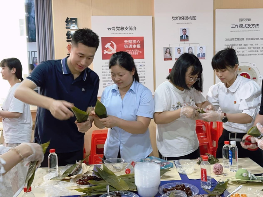 活动最后,桃阳社区党支部与云冷产业园党总支共30余名党员共同参与“廉心粽”手工制作。大家围坐一堂,以碧绿的粽叶包裹洁白的糯米,用红线紧紧缠绕,寓意“清清白白做人、扎扎实实做事”。社区老党员手把手教授年轻党员包粽技巧,并讲述端午民俗中蕴含的廉洁故事,让年轻党员在互动中感悟传统智慧。活动结束后,党员们将亲手包制的“廉心粽”送至云冷产业园货车司机手中,向辛勤奋斗在一线的新就业群体表达敬意。一名司机师傅接过粽子感动地说:“奔波千里能收到党组织包的粽子,这是最暖的‘端午礼物’。”
