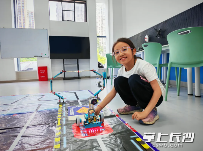 易为介绍,备赛时,杨歆玥在教室一坐就是好几个小时,编程需要理清逻辑,搭建要反复构思优化,两者结合在一起,才能参加好一场比赛。“解决一项技术难题,可能有千百种方式,要靠孩子自己找到其中最简单、最有效、最可靠的方法。”易为说。
