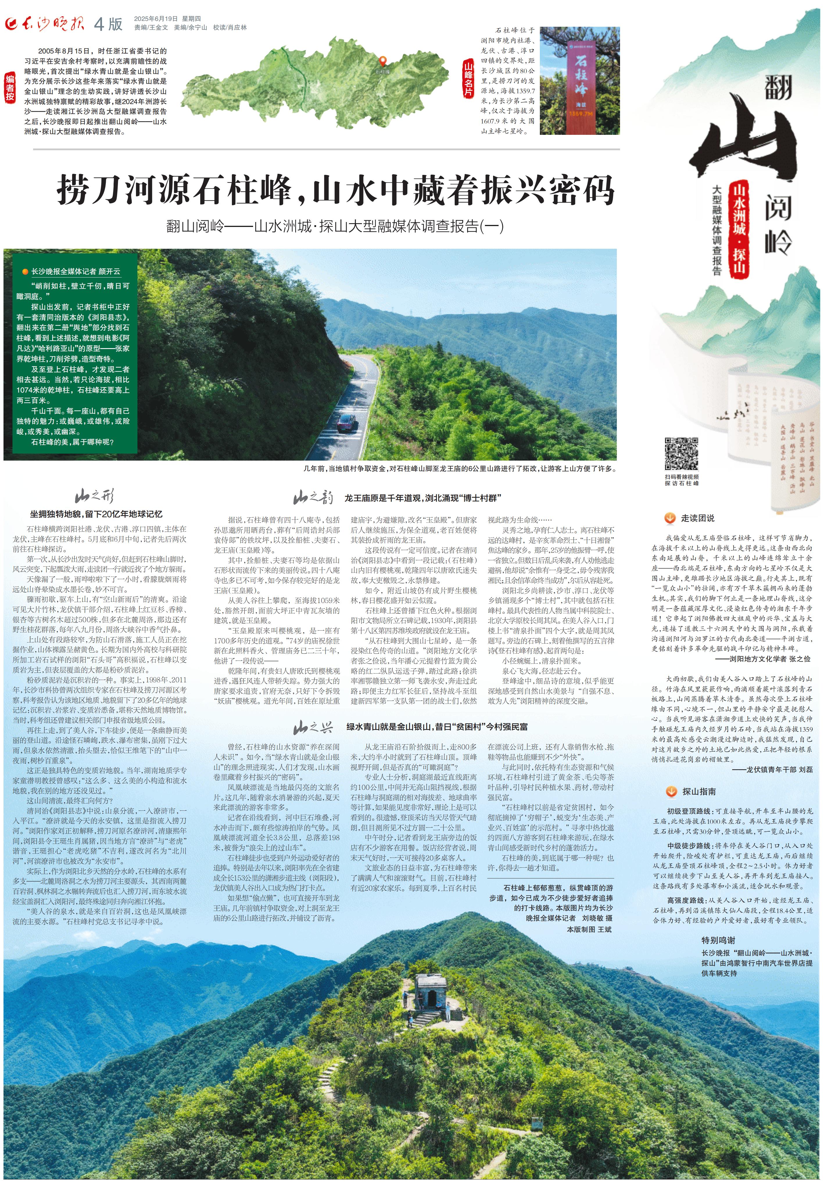 2005年8月15日,时任浙江省委书记的习近平在安吉余村考察时,以充满前瞻性的战略眼光,首次提出“绿水青山就是金山银山”。为充分展示长沙这些年来落实“绿水青山就是金山银山”理念的生动实践,讲好讲透长沙山水洲城独特禀赋的精彩故事,继2024年洲游长沙——走读湘江长沙洲岛大型融媒调查报告之后,长沙晚报即日起推出翻山阅岭——山水洲城·探山大型融媒体调查报告。