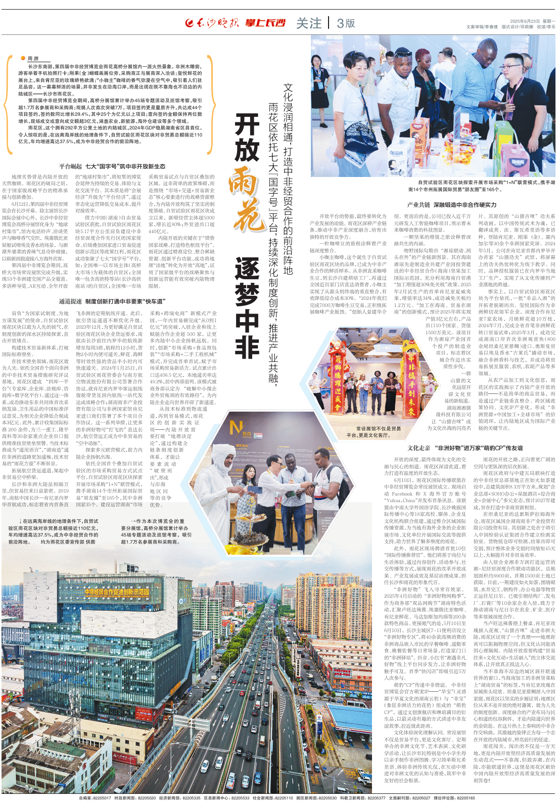 当不靠海不沿边的城区洞开联通世界的窗口,当海南加工的非洲坚果贴上“湖南贸易”的标签,当肯尼亚玫瑰在星城街头绽放、坦桑尼亚慈鲷游入中国家庭,雨花区以坚实的步履证明:地理区位从来不是开放的绝对藩篱,敢为人先的制度创新、深度融合的产业布局与民心相通的包容胸怀,才是内陆通向世界的金钥匙。在这片热土上奏响的中非合作交响曲,其激越的旋律正为每一个志在开放的内陆城市,照亮前行的征途。