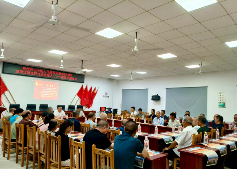长沙晚报掌上长沙7月31日讯(通讯员丁慧敏)在“八一”建军节来临之际,为大力弘扬拥军优属、拥政爱民的光荣传统,扎实做好双拥工作,将党和政府对军人军属的关怀温暖落到实处,7月31日上午,澄潭江镇达坪村组织召开庆祝中国人民解放军建军98周年退伍军人“八一”座谈会。大家齐聚一堂,会议室内暖意融融,新老军人围坐的圆桌上茶水氤氲,笑颜灿烂,一场深情对话在夏日晨光中上演,共话那份割舍不断的鱼水深情。