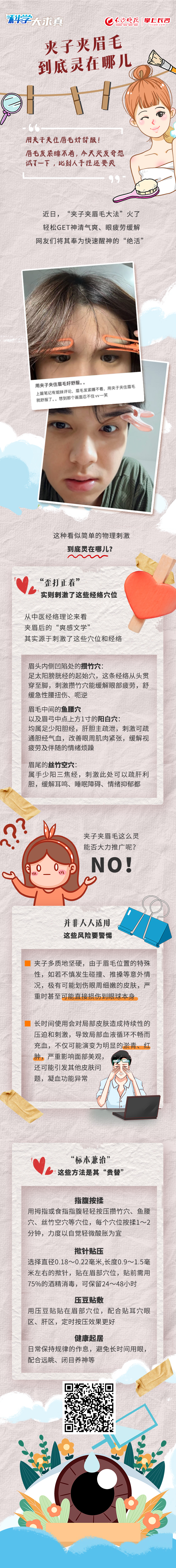 科学大求真丨夹子夹眉毛,到底灵在哪儿?-九游网址 稿源:掌上长沙2025-08-01 14:35 相链区块链 您的浏览器不支持 audio 标签。 近日,“夹子夹眉毛”在网络走红,这种看似简单的物理刺激,真的有科学依据吗?是否适合所有人呢?长沙市中医医院(长沙市第八医院)专家在线解读。 作者:周意 易昊 编辑:肖文娟 素材提供:傅容容 【作者:周意 易昊 肖文娟 傅容容】 【编辑:周意】 长沙晚报社九游网址的版权声明 关键词: >>我要举报