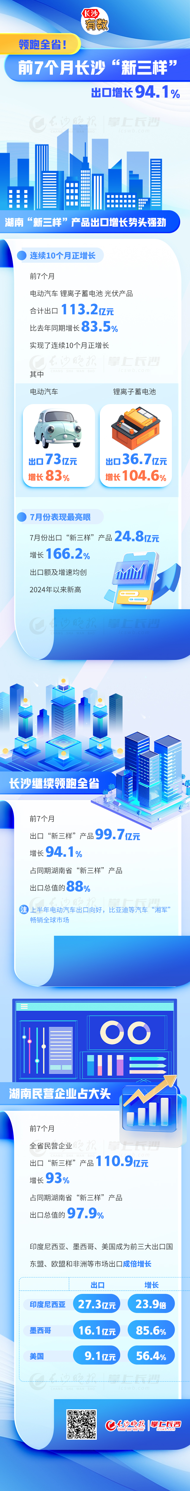 长沙有数|领跑全省!前7个月长沙“新三样”出口增长94.1%-九游网址 稿源:掌上长沙2025-08-13 16:09 相链区块链 您的浏览器不支持 audio 标签。 2025年前7个月,湖南省电动汽车、锂离子蓄电池、光伏产品“新三样”产品出口增长势头强劲。作者:刘天乐 刘家婧 实习生 张龙萱编辑:肖文娟素材提供:刘捷萍 【作者:刘捷萍 刘天乐 刘家婧 肖文娟】 【编辑:刘天乐】 长沙晚报社九游网址的版权声明 关键词: >>我要举报