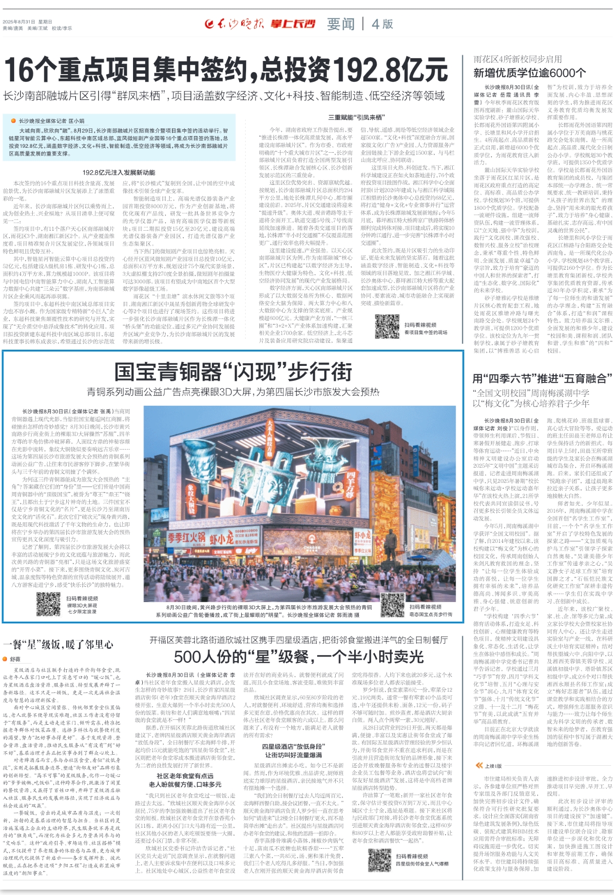 “趁着七夕和周末,我和朋友们来长沙游玩,这里的美食还没吃够呢!”来自哈尔滨的小伙张贵程举着手机全程录制,兴奋地向同伴介绍,“3d大屏的画体非常好,之前在历史课本里见过四羊方尊的照片,没想到今天在街头能看到这么立体的,感觉一下子拉近了和历史的距离,长沙的旅游宣传很不错哟。”