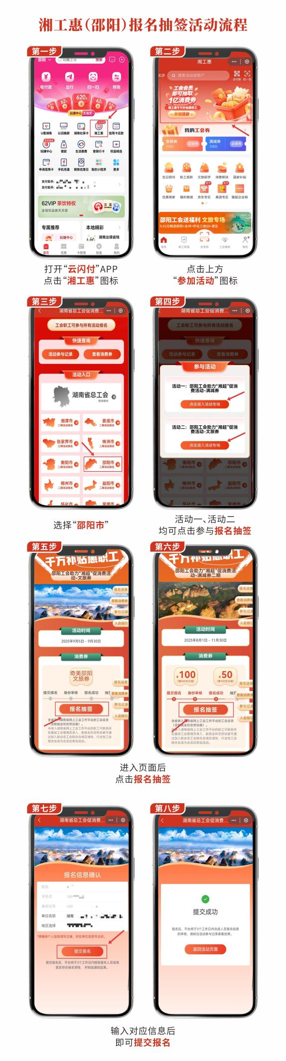 报名方式:通过“云闪付”app进入“湘工惠”小程序,填写信息即可报名。