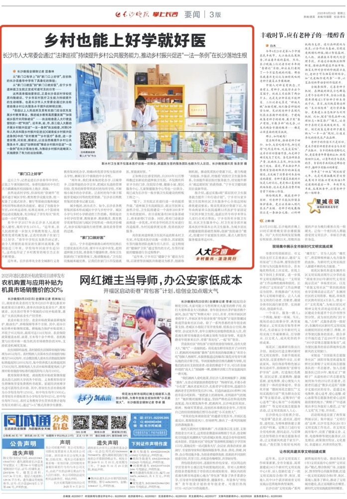 这两类幸福场景背后,正是长沙县农村学校优质均衡建设、宁乡市农村医疗卫生能力持续提升的生动缩影,也是长沙市人大常委会通过执法检查助推乡村公共服务水平提升的鲜明注脚。