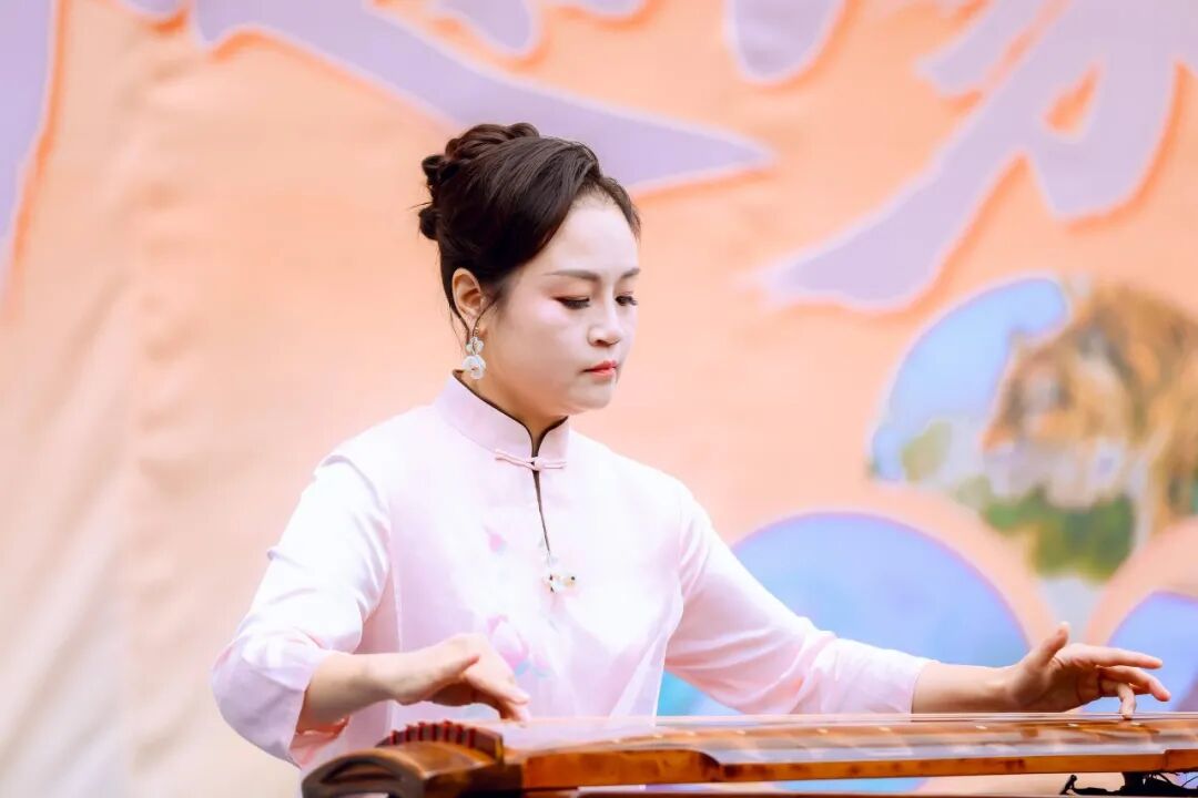 活动现场,中国茶艺优雅展示,茶汤流转间漫溢东方雅韵;一级演奏员刘慧扬端坐台前,指尖轻拨古琴,一曲《流水》倾泻而出——琴音清越如涧泉鸣石,余韵绵长似秋云绕峰;湘剧国家级代表性传承人曹汝龙带来的湘剧《水调歌头》,以醇厚婉转的唱腔演绎千古名篇,与明月遥相呼应,共抒佳节情怀;民乐演奏《我和我的祖国》旋律响起,市民游客齐声合唱,深情涌动。