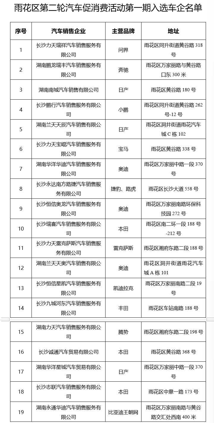 本次活动将持续四个月,分四期开展,覆盖国庆、中秋、双十一、元旦等重要消费节点。第一期:2025年9月29日—10月28日(覆盖国庆中秋双节);第二期:10月29日—11月28日;第三期:11月29日—12月28日;第四期:12月29日—2026年1月28日。消费者在活动期间于雨花区参与活动的车企购买家用新车,即可通过车企申领油电储值卡,凭卡可在长沙市范围内的和顺石油加油站、和顺新能源充电站使用(详见后图),有效期为激活之日起至2026年12月31日。每位持卡客户首次到站并完成第一次加油扣款或转存充电余额时,石油企业和顺站点会额外免费赠给持卡人一提“名仁云台山泉”(12瓶×570ml)。注意活动名额有限,先到先得。