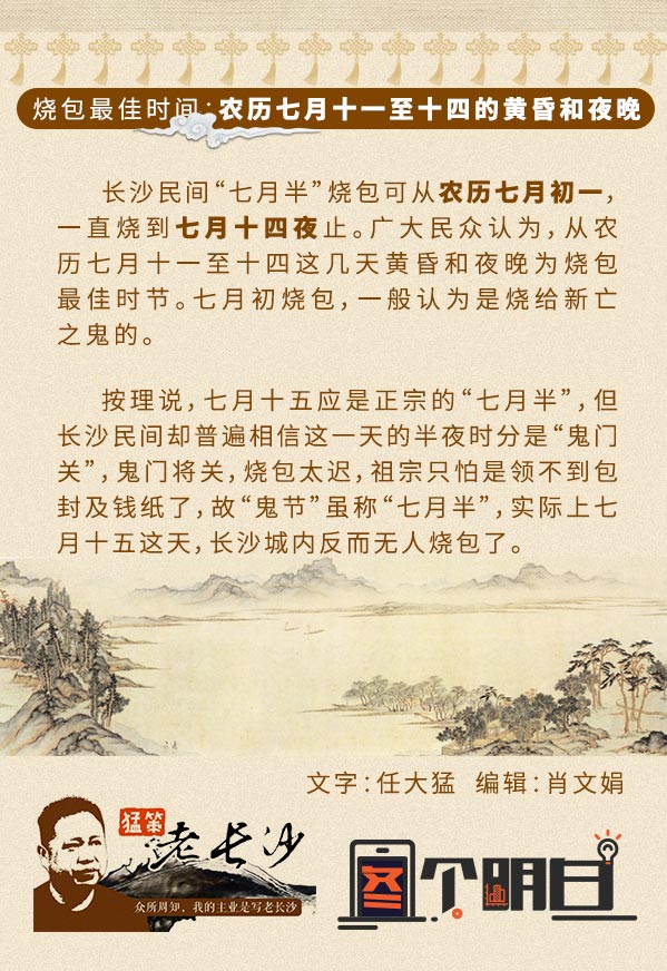 当然,如想更深入了解更纯粹的长沙“七月半”民间风俗的更具体细节,请随任大猛“猛策老长沙”专栏,深入到长沙民间深处。借此,你当然会更了解真正的老长沙风土民情。