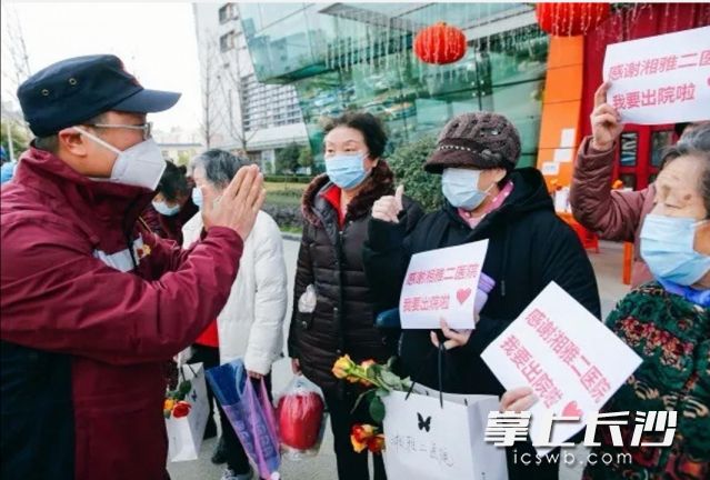 2月23日,也就是治疗的第15天,湘雅二医院支援湖北医疗队负责的病区一次性出院患者11名,并保持了零重症患者死亡、零医护人员感染记录。