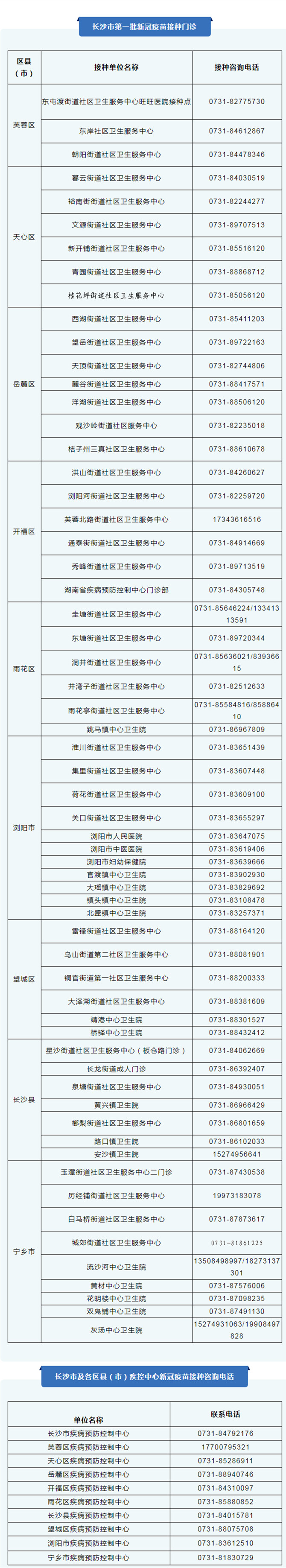 长沙晚报掌上长沙1月14日讯 据长沙市疾病预防控制中心消息 根据《中华人民共和国疫苗管理法》、国务院应对新型冠状病毒肺炎疫情联防联控机制有关要求,我市9类重点人群新冠病毒疫苗(以下简称“新冠疫苗”)接种工作正在紧张进行。近日,长沙市疾控部门对外公布了长沙市第一批新冠疫苗接种门诊名单。
