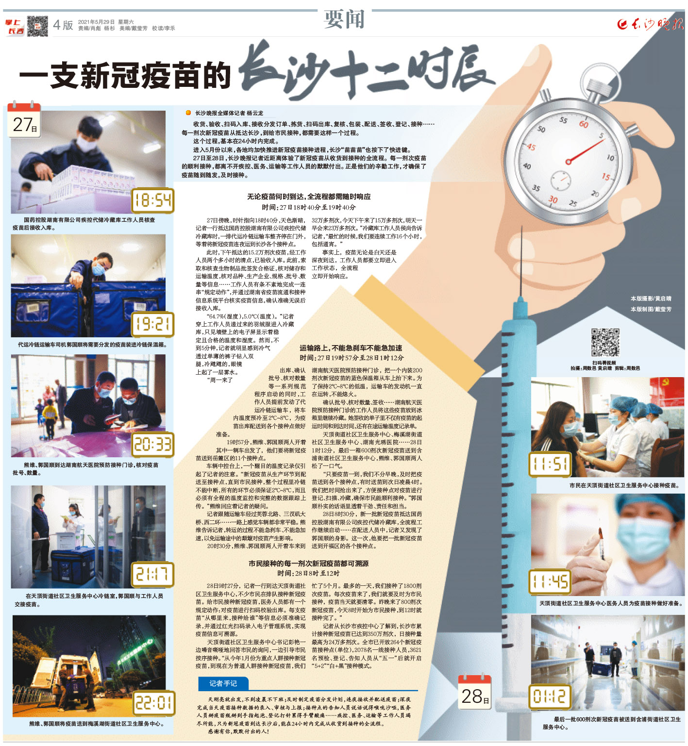 27日至28日,长沙晚报记者近距离体验了新冠疫苗从收货到接种的全流程。每一剂次疫苗的顺利接种,都离不开疾控、医务、运输等工作人员的默默付出。正是他们的辛勤工作,才确保了疫苗随到随发,及时接种。