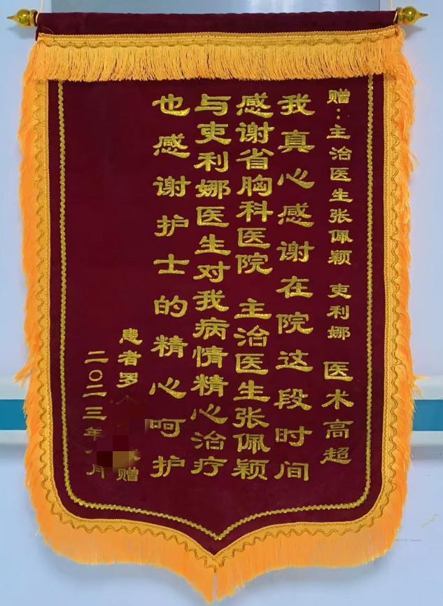 经过两个多月的对症治疗,罗先生的病情大为好转,他布满愁容的脸上又绽放出了久违的笑容。为感谢骨科全体医护人员的精心诊治,罗先生及家人特意定制了这面锦旗。“其实,这些都是作为一名医生的本职工作,患者的康复就是医护人员最大的心愿。”张佩颖医生说。