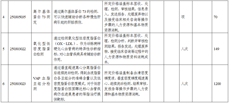 试行价最高的一项为vap血脂亚组分检测,每人次1200元,该项目对于低密度脂蛋白胆固醇达标心血管疾病仍在进展患者的降脂治疗提供靶标。